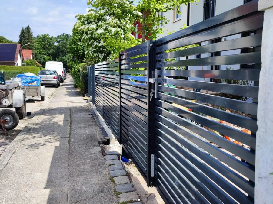 - Metall: Robust und pflegeleicht, bieten Metallzäune eine moderne und elegante Optik. Ob schmiedeeisern, aus Edelstahl oder Aluminium – Metallzäune sind langlebig und wetterbeständig.
